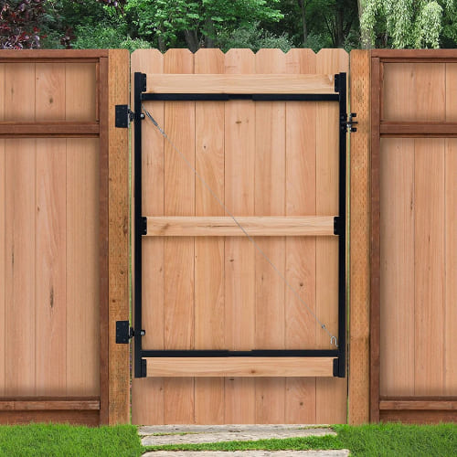The kit includes a patented diagonal truss cable system that allows you to adjust the tension over time, pulling the gate back into a perfect square if the ground shifts or the wood settles.